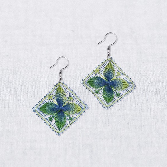 細糸で作られた、とても繊細なニャンドゥティのピアスです。
